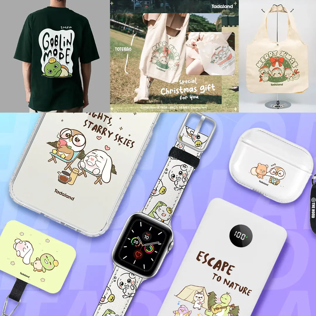 穿上 Tadaland T 恤並拿起潮流手機殼及布袋,時尚之餘還能突顯你的個性。